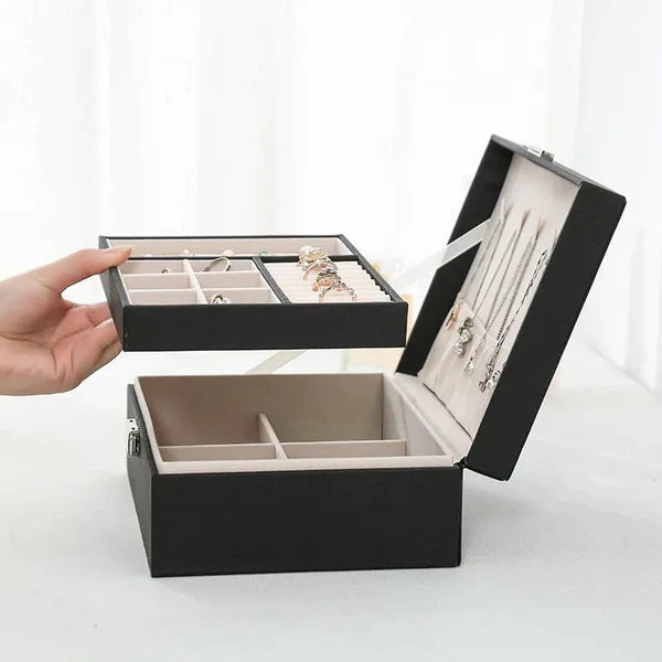 Discover the ultimate in jewelry organization with our high-quality PU (Polyurethane) leather jewelry organizer. Crafted for both elegance and durability, this organizer boasts a sleek and modern design that seamlessly complements any bedroom or dressing area. Its compact, space-saving size fits effortlessly on your vanity, dresser, or inside a drawer. With multiple compartments at your disposal, your jewelry will be neatly arranged