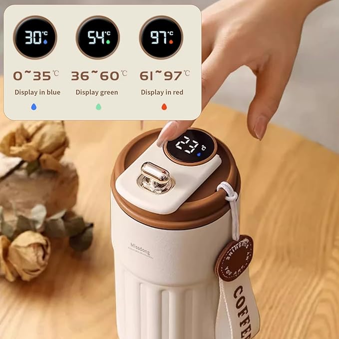 - ✅【Temperature Control】: This thermal coffee cup features a double-layer insulation design, allowing you to enjoy the perfect taste at any time. It maintains the freshness and temperature of your beverage, lasting for hours to ensure an ideal insulation effect.This Coffee Thermos With Led Temperature Display Whether sipping leisurely or taking hearty sips of your favorite drink, it's all at your fingertips.